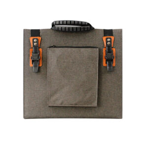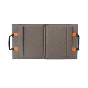 Folds compact to 330 × 505 × 40 mm and weighs just 4 kg. Built-in handle, adjustable straps, and reinforced buckles let you carry it like a briefcase or hang it on tents, poles, or RV rails. No tools required—unfold, angle toward the sun, plug in, and start charging within seconds.